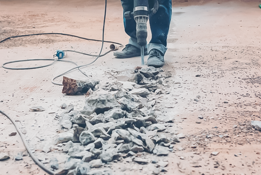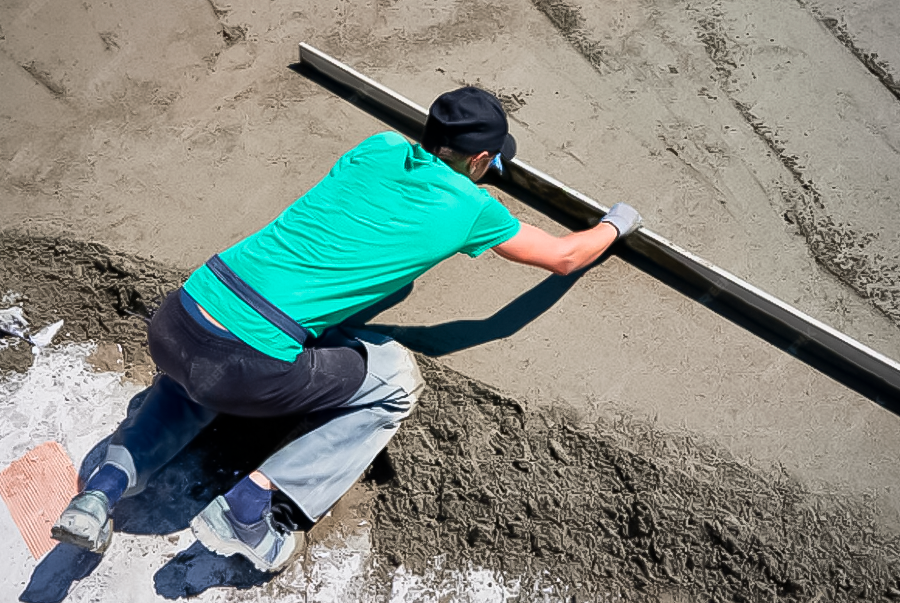 A recuperação de pisos de concreto é realizada através da preparação da superfície, tratamento de fissuras, nivelamento com argamassas especiais (como epóxi e P600).